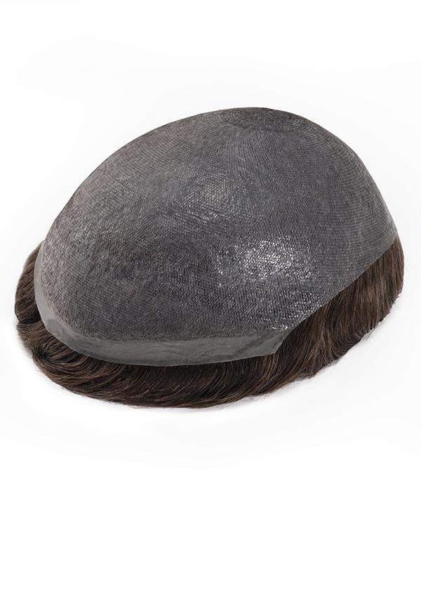 Voici un prothèse capillaire prédécoupés avec un chignon à cheveux courts qui a un style plus décontracté. C'est une coiffure fantastique si vous recherchez un look professionnel. Les hommes dans la trentaine et la quarantaine choisissent souvent cette coiffure pour avoir l'air jeune mais professionnel.